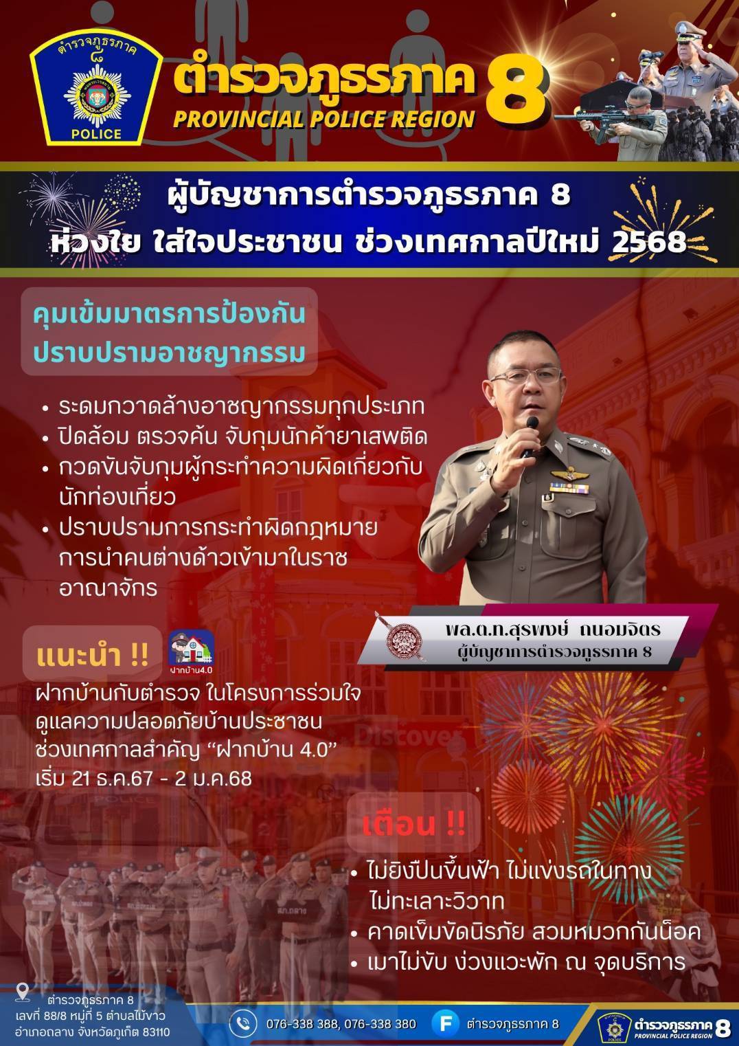 📣 ตำรวจภูธรภาค 8 ห่วงใย ใส่ใจประชาชน
