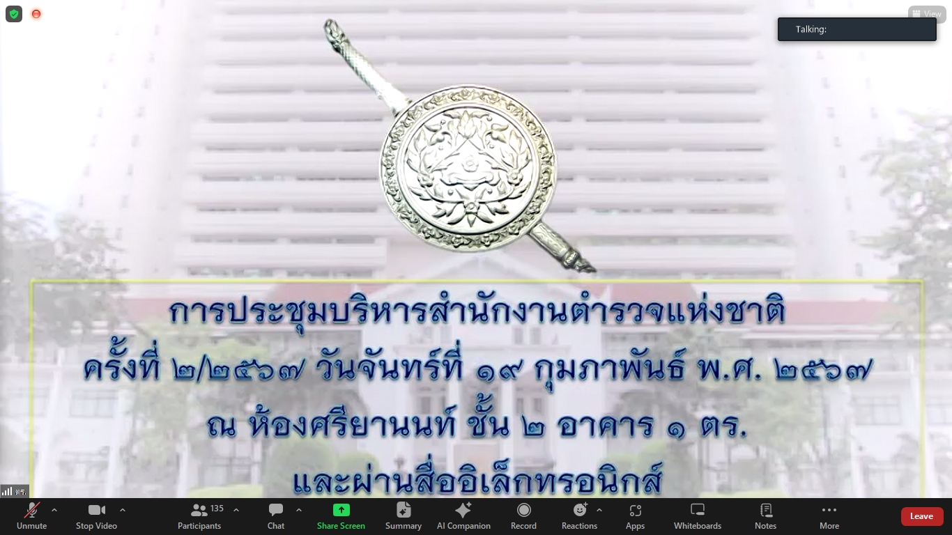 ร่วมประชุม​ บร.ตร.​ ครั้งที่​ 2/2567 ประจำเดือนกุมภาพันธ์​ 2567 ผ่านจอภาพ