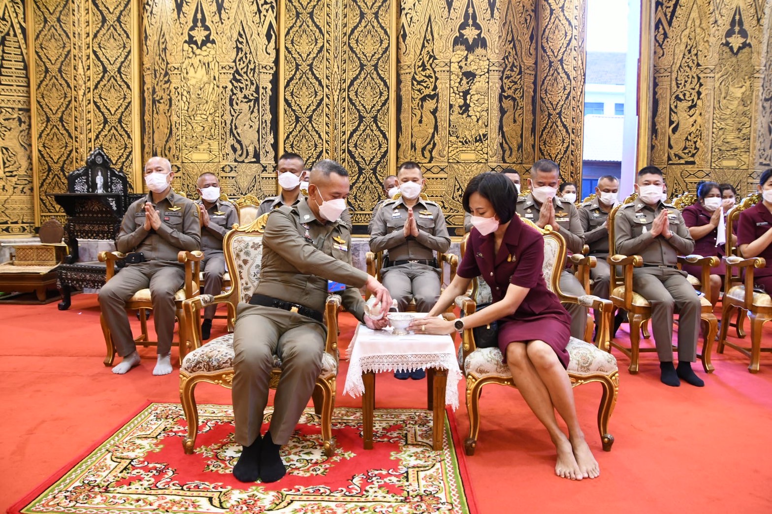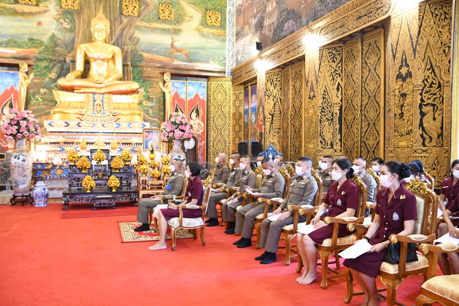 👮‍♂️ พล.ต.ต.ศรัญญู ชำนาญราช ผบก.ภ.จว.สุราษฎร์ธานี และคณะแม่บ้านตำรวจภูธรจังหวัดสุราษฎร์ธานี, ข้าราชการตำรวจในสังกัดตำรวจภูธรจังหวัดสุราษฎร์ธานี ร่วมพิธีเจริญพระพุทธมนต์และเจริญจิตตภาวนา เพื่อถวายพระพรชัยมงคลแด่สมเด็จพระเจ้าลูกเธอ เจ้าฟ้าพัชรกิติยาภา นเรนทิราเทพยวดี กรมหลวงราชสาริณีสิริพัชร มหาวัชรราชธิดา