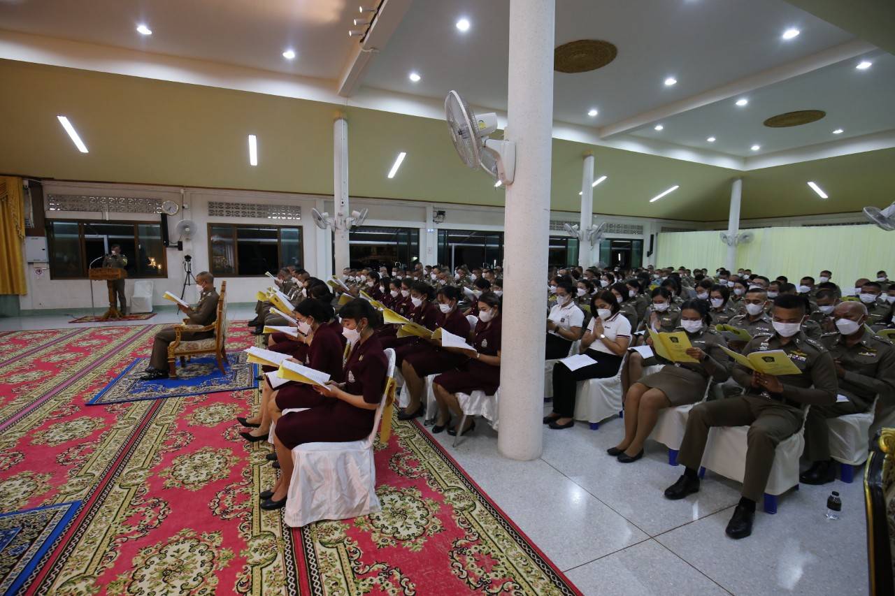 👮‍♂️ พล.ต.ท.สุรพงษ์ ถนอมจิตร ผบช.ภ.8 พร้อมด้วยประธานชมรมแม่บ้านตำรวจภูธรภาค 8 ข้าราชการตำรวจ แม่บ้านตำรวจในสังกัดตำรวจภูธรภาค 8 รวมจำนวน ๒00 นาย และพี่น้องประชาชนในพื้นที่ ได้ร่วมกันจัดพิธีเจริญพระพุทธมนต์และเจริญจิตตภาวนา เพื่อถวายพระพรชัยมงคลแด่ สมเด็จพระเจ้าลูกเธอ เจ้าฟ้าพัชรกิติยาภา นเรนทิราเทพยวดี กรมหลวงราชสาริณีสิริพัชร มหาวัชรราชธิดา