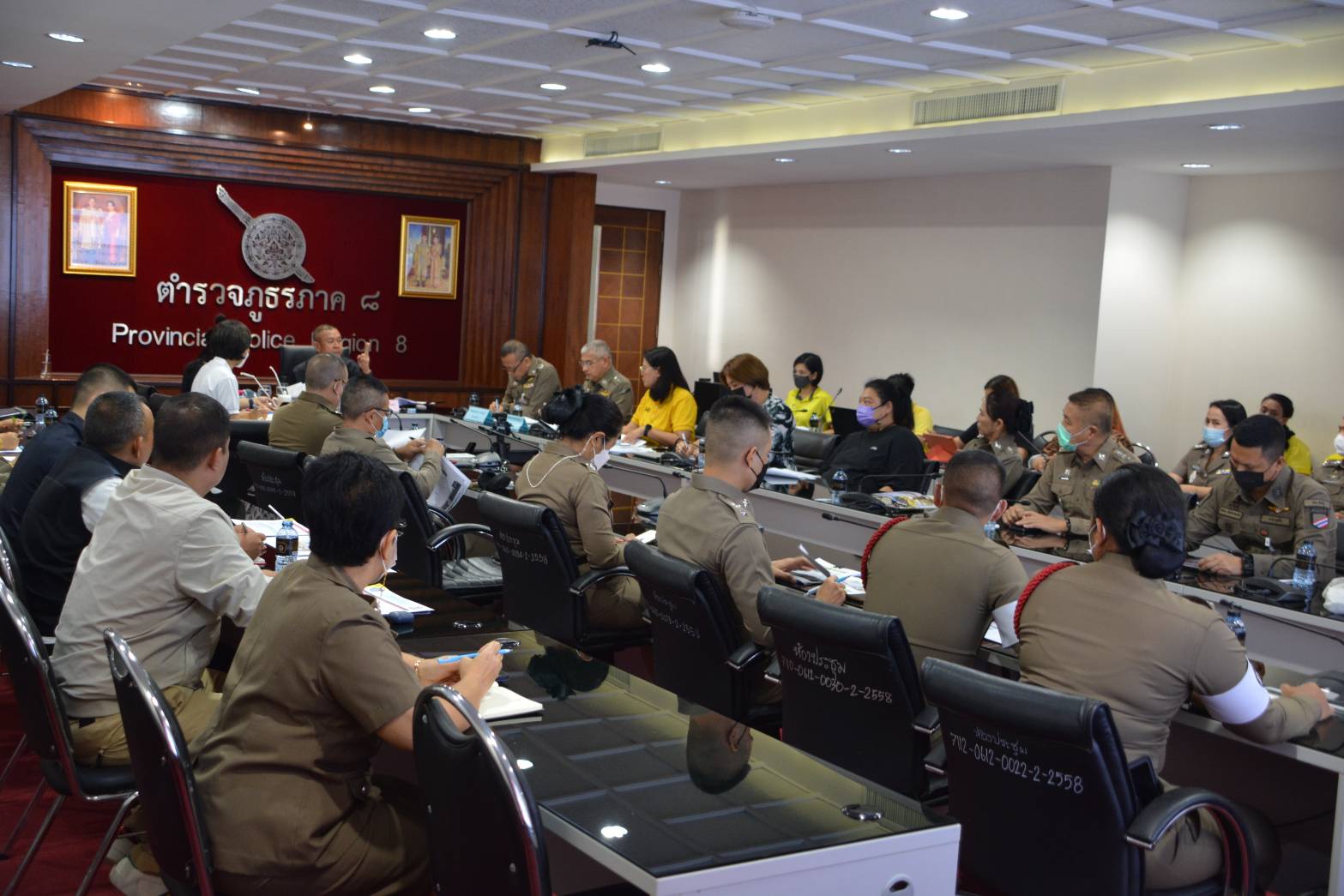 👮‍♂ พล.ต.ท.สุรพงษ์​ ถนอมจิตร ผบช.ภ.8 ในฐานะเป็นประธานฯ​ พร้อมด้วยคณะข้าราชการตำรวจในสังกัดภูธรภาค​ 8​ และเจ้าหน้าที่ที่เกี่ยวข้อง ร่วมกันประชุมเตรียมความพร้อม ต้อนรับนายกสมาคมแม่บ้านตำรวจตรวจเยี่ยมโครงการ OPOP ชมรมแม่บ้านตำรวจ ภ.8