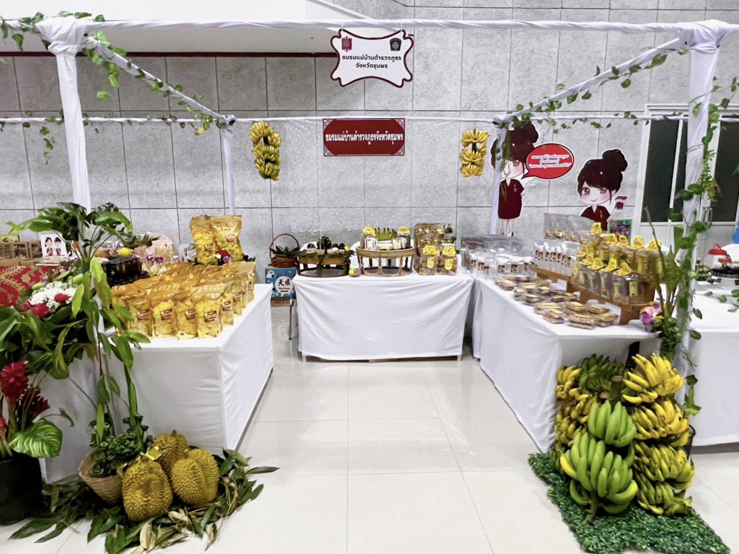 >> บูธที่ 2 ​ผลิตภัณฑ์ของ ภ.จว.ชุมพร ผลิตภัณฑ์แปรรูปจากกล้วยและก้างปลา ทุเรียนทอด ปลาจิ้งจ้าง