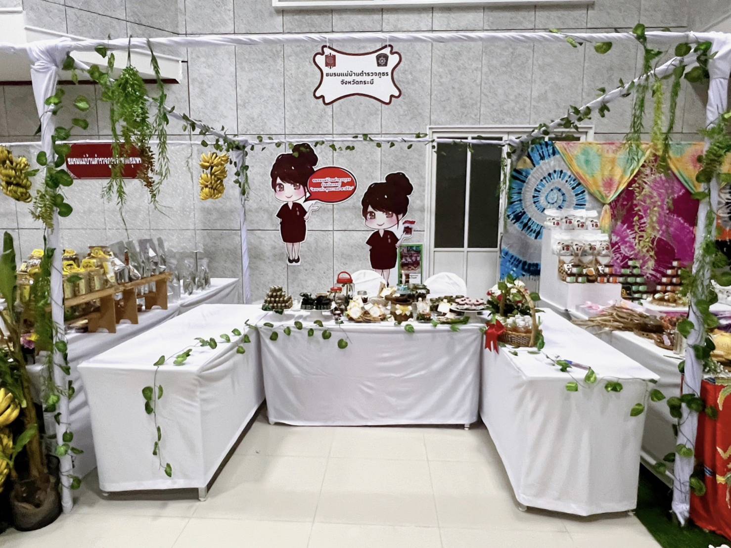 >> บูธที่ 4 ​ผลิตภัณฑ์ของ ภ.จว.พังงา ชุดบาบ๋า ผ้ามัดย้อม กระเป๋าผ้าด้นมือ ขนมปังกรอบ กุ้งเสียบสามรส