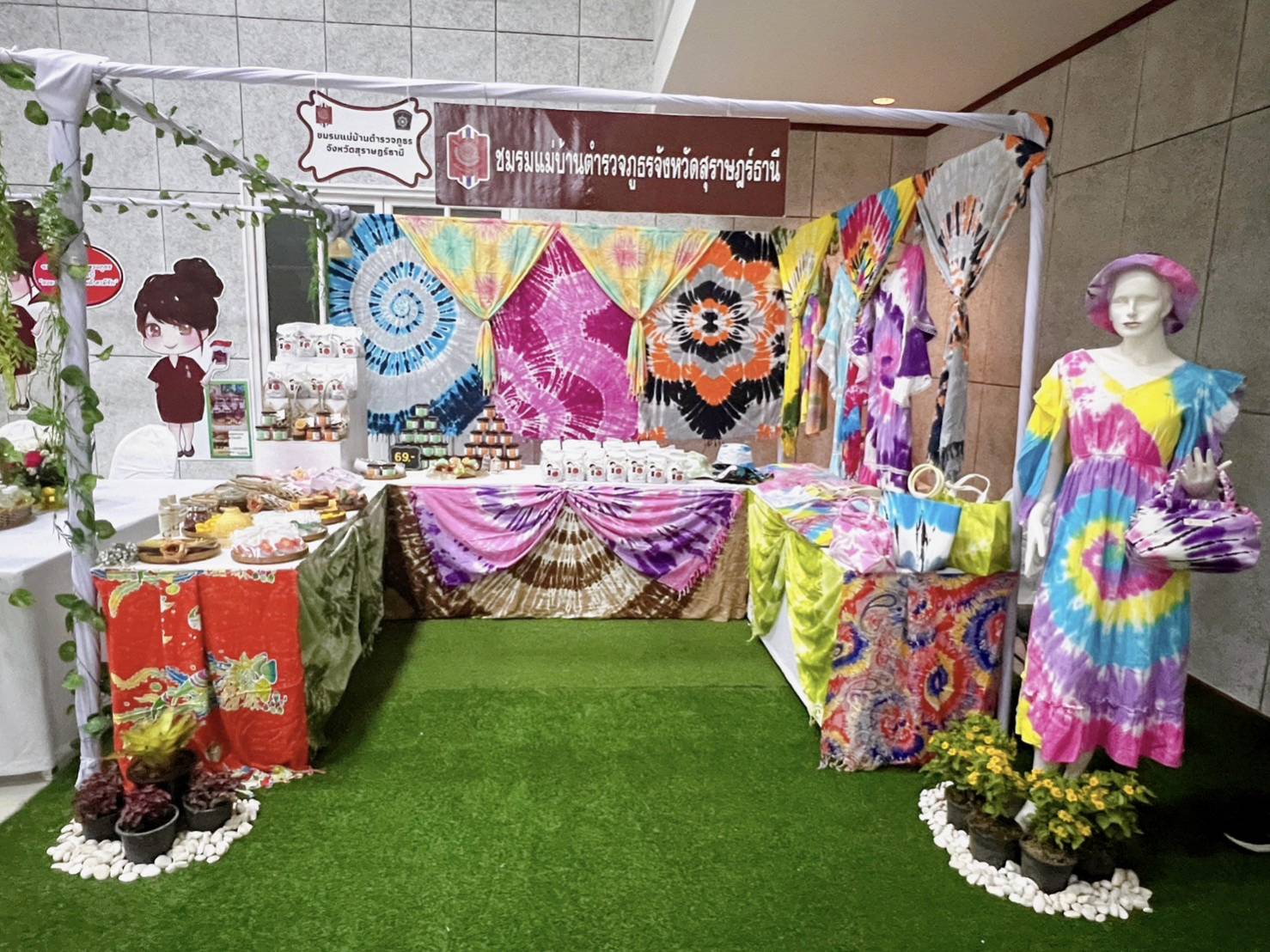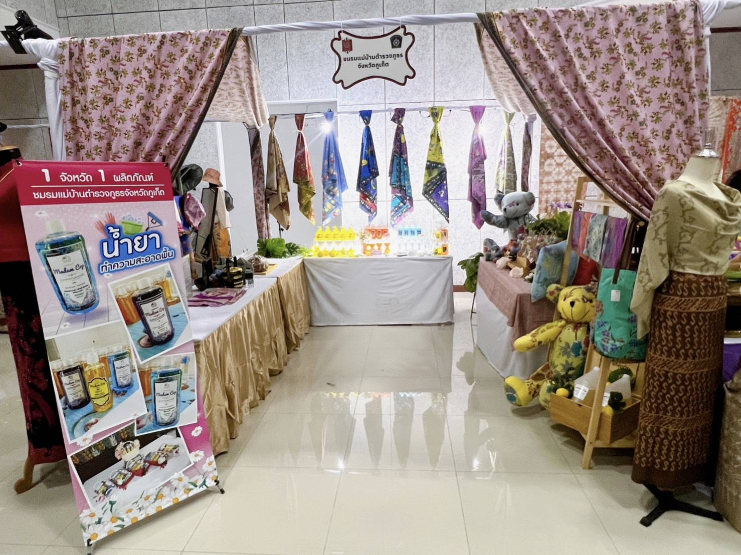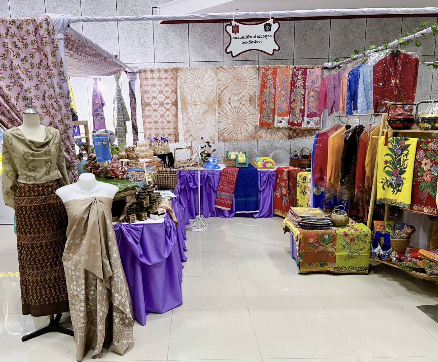 >> บูธที่ 6 ​ผลิตภัณฑ์ของ ภ.จว.ระนอง ผ้าปาเต๊ะปัก ผ้าปาเต๊ะเพ้นท์ลาย กางเกงผ้าปาเต๊ะ หมวกผ้าปาเต๊ะ