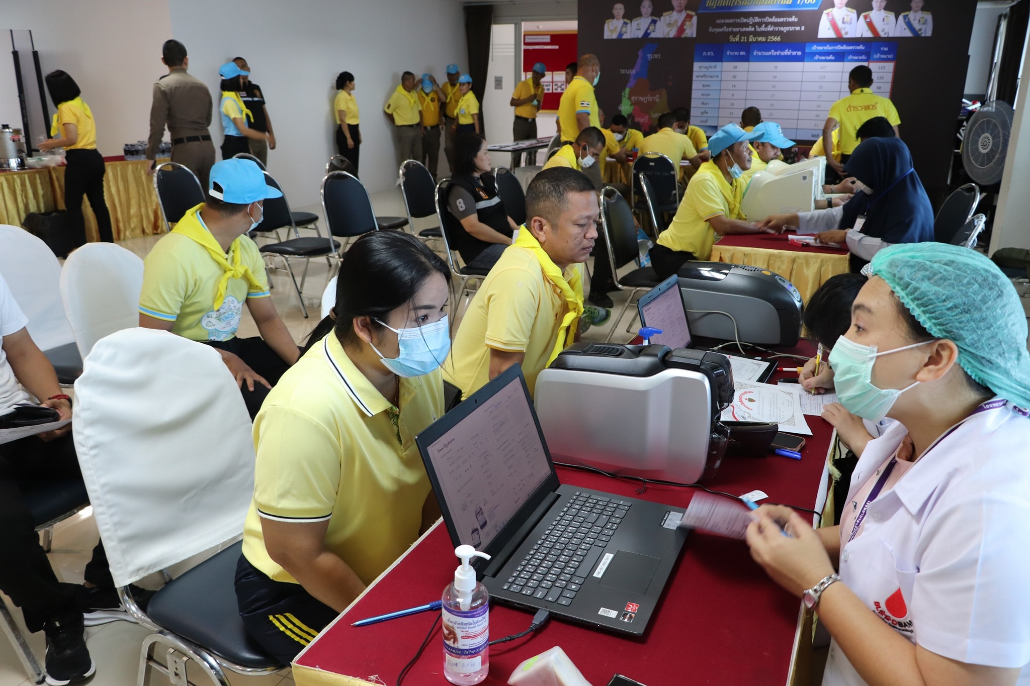 ครอบครัวและประชาชนที่เข้าร่วมบริจาคโลหิต​ โดยมีคณะแพทย์​ พยาบาล​