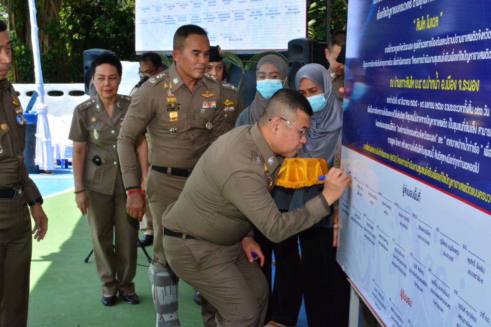 ผบก.ภ.จว.ระนอง จึงนำนโยบาย ผบ.ตร. โครงการชุมชนยั่งยืนฯ มาแก้ปัญหายาเสพติด