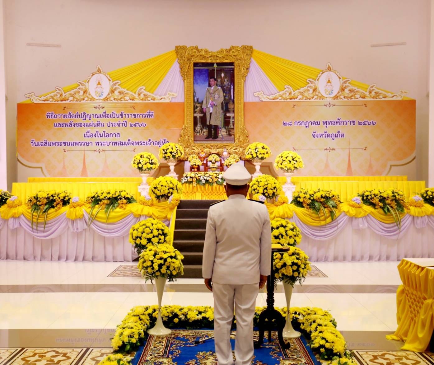 ร่วมในพิธีทำบุญตักบาตรถวายพระราชกุศล และร่วมพิธีถวายสัตย์ปฏิญาณเป็นข้าราชการที่ดี