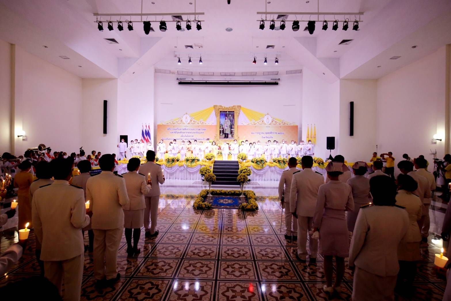 พิธีถวายเครื่่องราชสักการะ วางพานพุ่มและพิธีจุดเทียนถวายพระพรชัยมงคล