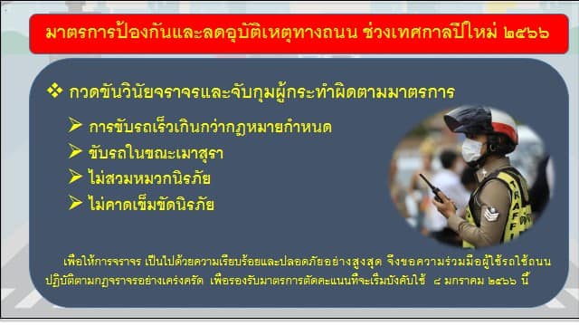 📣 มาตรการการบังคับใช้กฎหมายเพื่อลดและป้องกันอุบัติเหตุ ช่วงเทศกาลปีใหม่ 2566‼️‼️