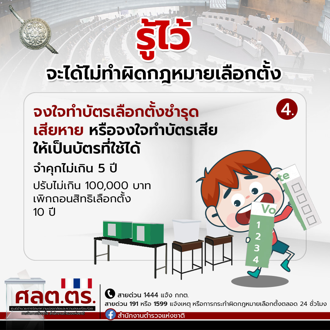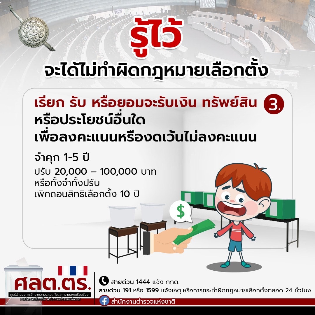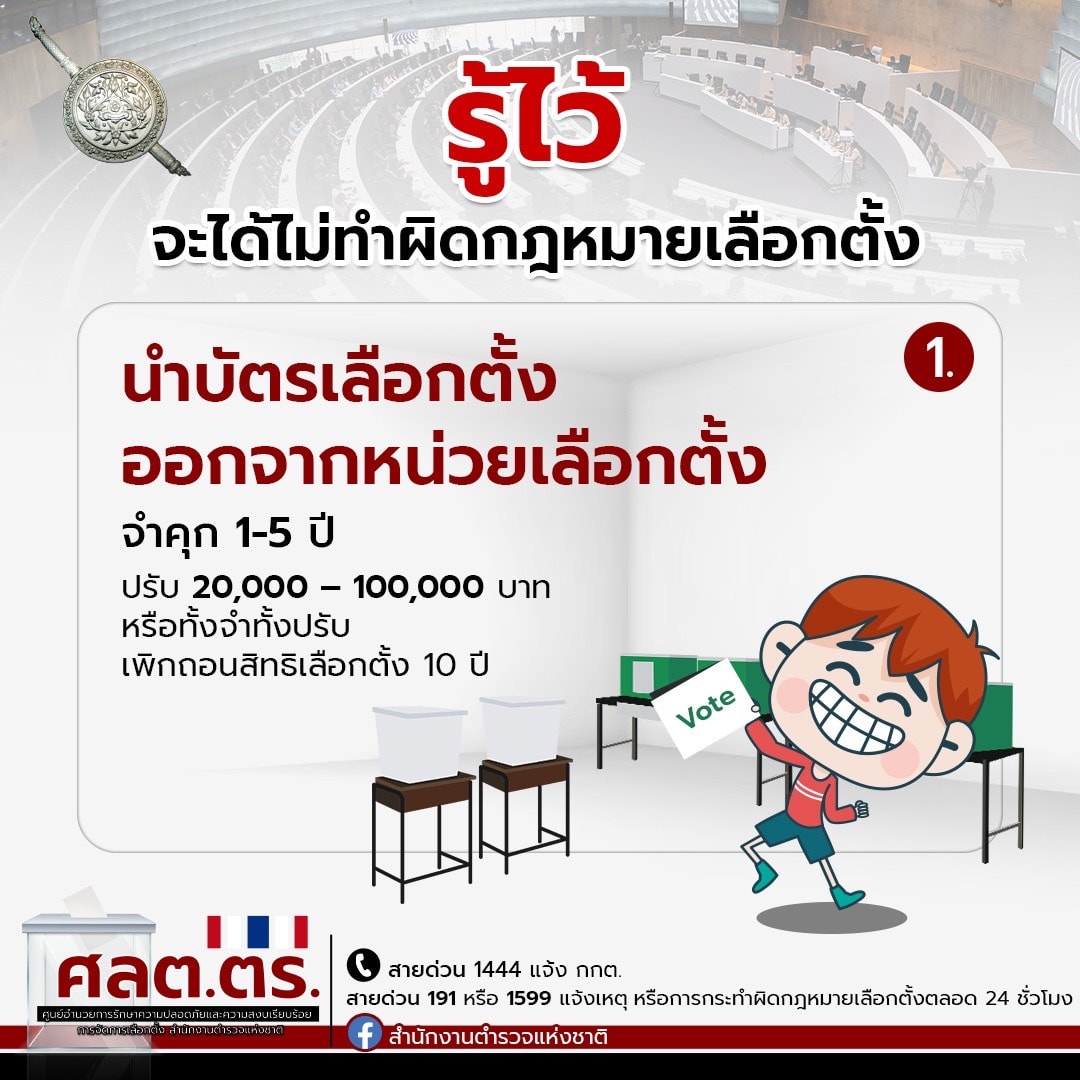 อย่างไรก็ตามหากท่านพบเห็นการกระทำความผิดกฎหมายเลือกตั้ง สามารถแจ้งตำรวจได้ที่สถานีตำรวจนครบาล