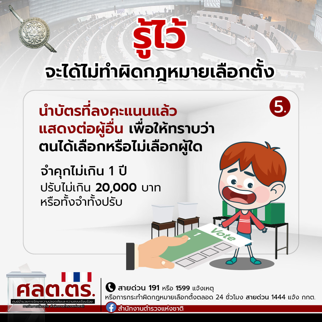 ในวันอาทิตย์ที่ 7 พฤษภาคม 2566 ให้ระมัดระวังการกระทำผิดกฎหมายเกี่ยวกับการเลือกตั้ง