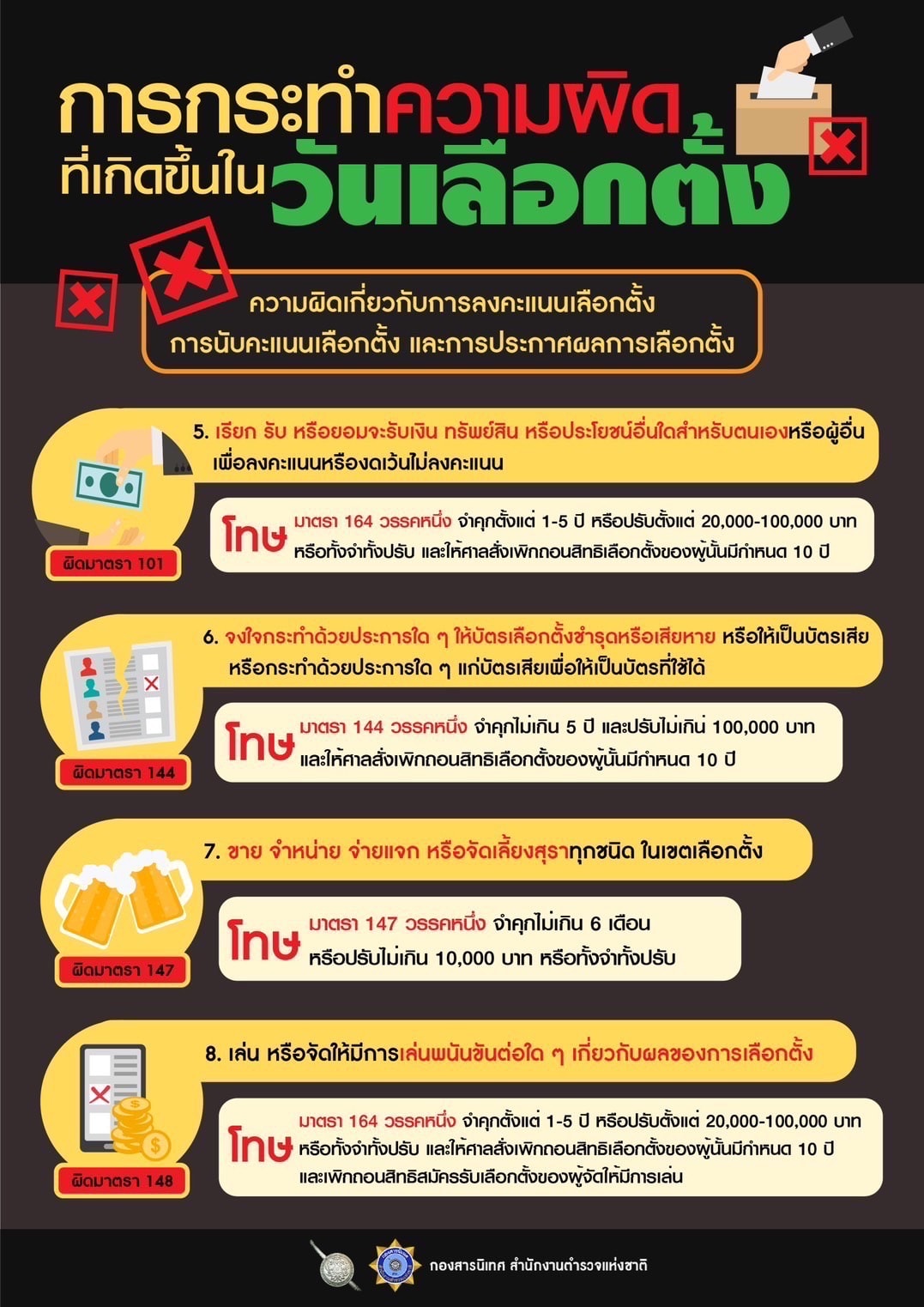 📣 ตร. เตือน 8 ข้อ อย่าหาทำ "ในวันเลือกตั้ง" โทษหนัก ทั้งจำและปรับ