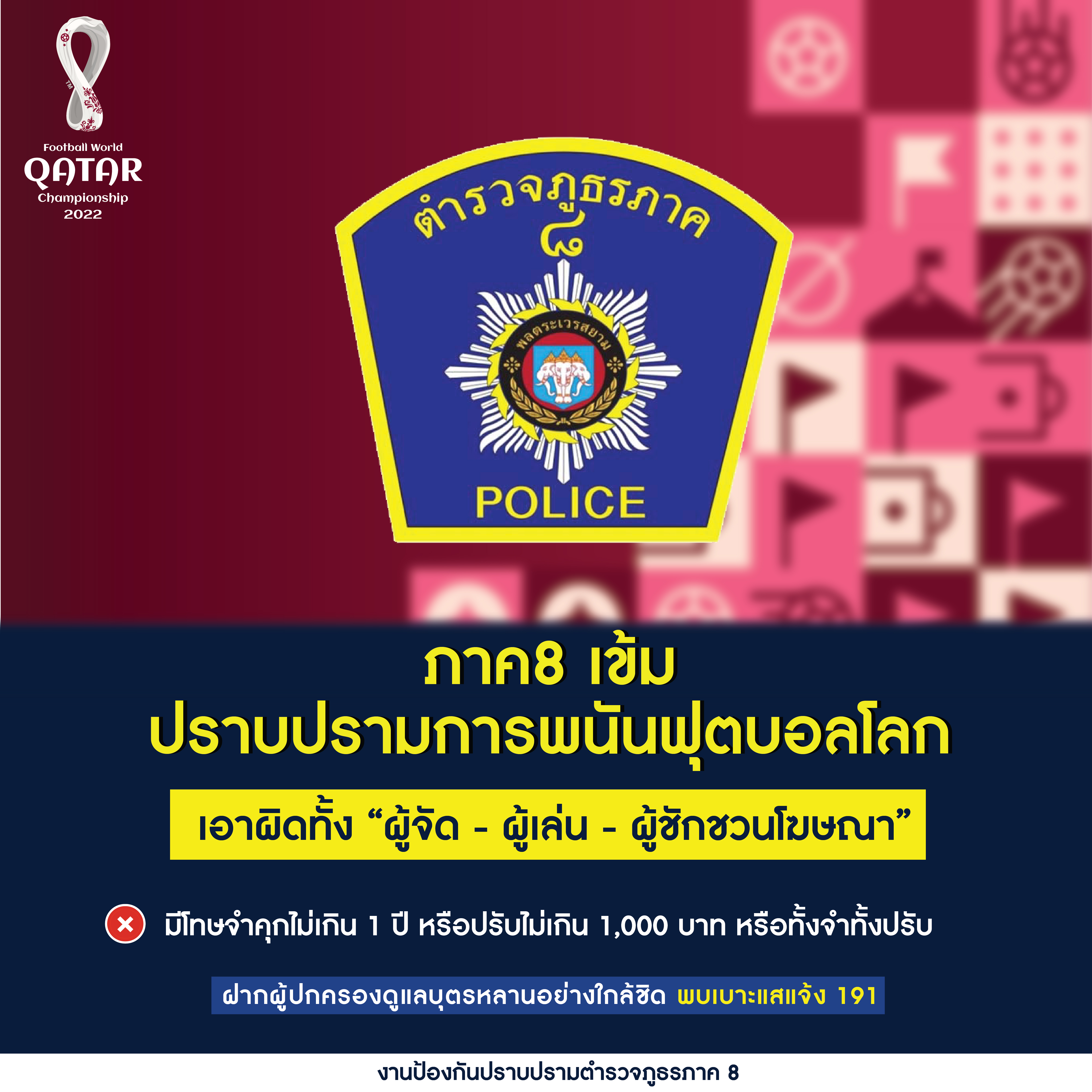 ภาค 8 เข้มปราบปรามการพนันฟุตบอลโลก